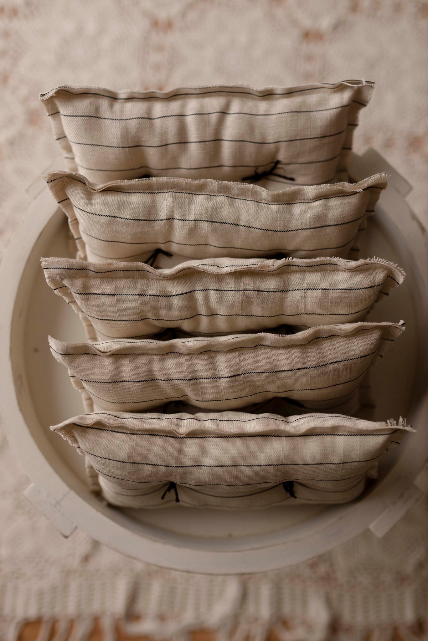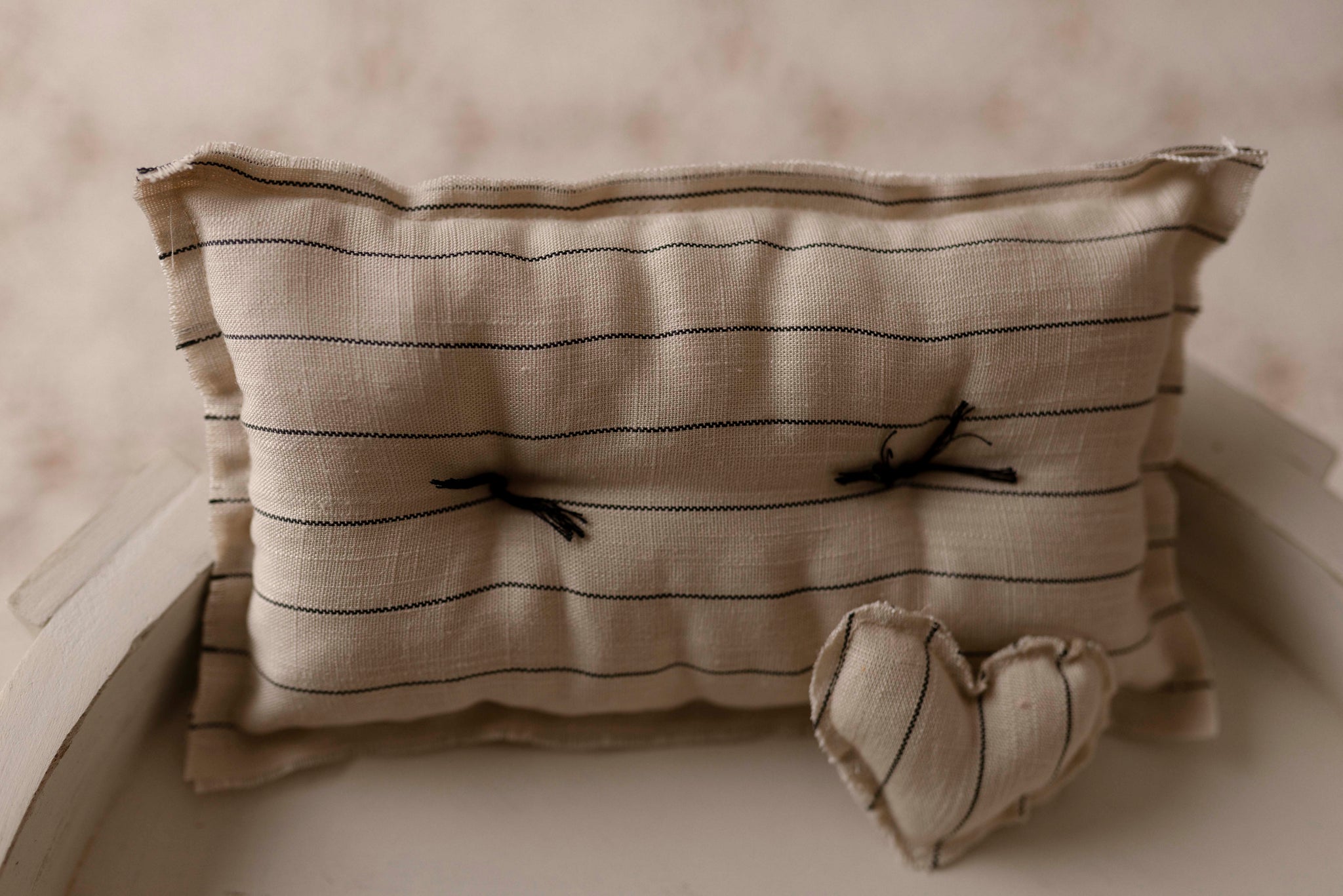 • Load image into Gallery viewer, Tan Pin Stripe Pillow  + Micro Heart